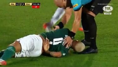 I OSKARA DOBIJA..: Sudija pipnuo po leđima napadača Palmeirasa, on pao kao snajperom pogođen (VIDEO)