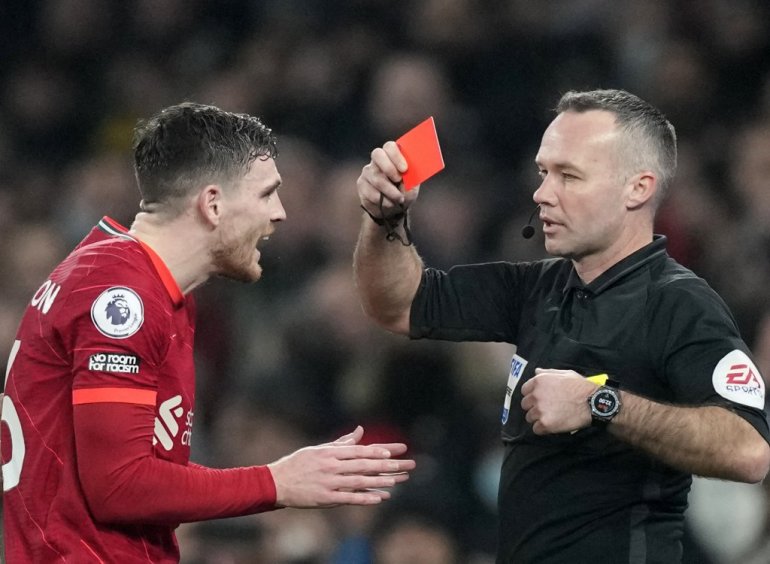 Endi Robertson dobija crveni karton/FOTO: AP/Tanjug