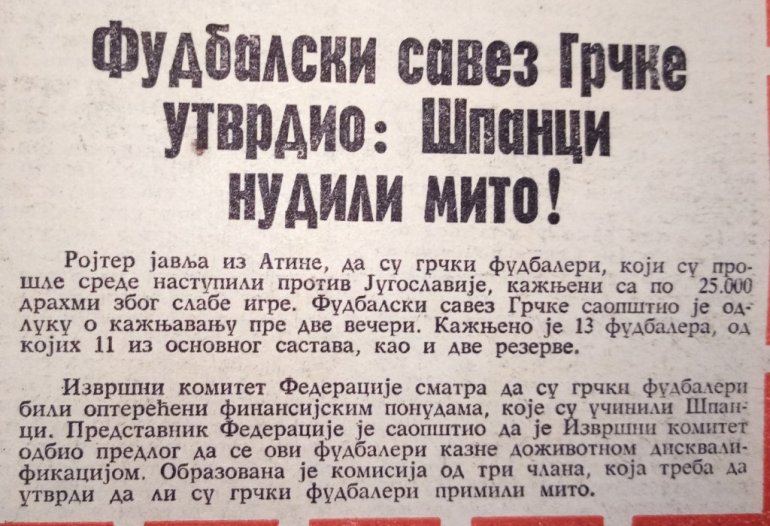Španski "As" je, međutim, sa svoje strane tvrdio da imaju saznanja da su Jugosloveni podmitili grčkog golmana Kelesidisa! Selektor Panaguljas je, napadnut sa svih strana, najavio ostavku.