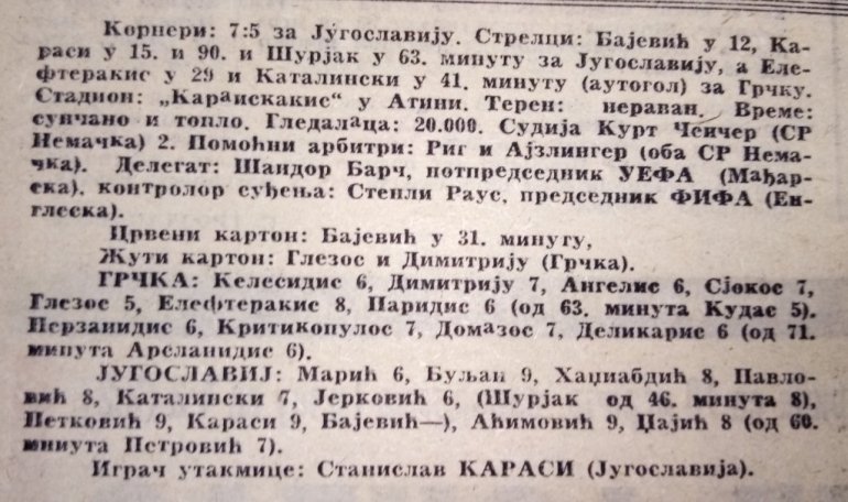 Mesec dana kasnije, 18. novembra na "Marakani", pred 65.000 navijača upisali smo očekivane bodove protiv Grka. Jovan Kule Aćimović ispalio je u 14. minutu đule sa oko 25 metara i to je bilo dovoljno za pobedu.