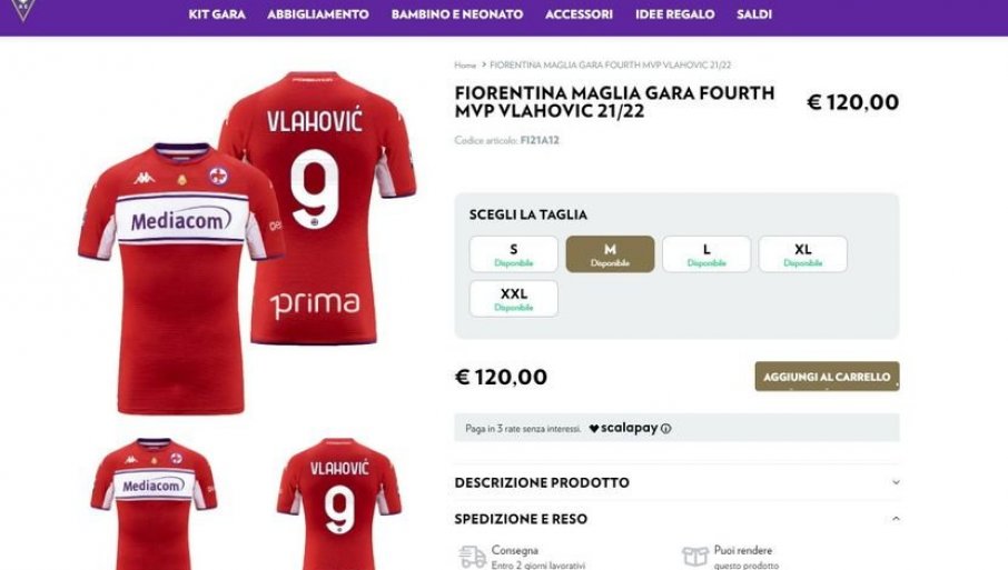 Ipak, iako je Fiorentina učinila sve da Vlahovića označi kao izdajnika, na sajtu klupskog šopa i dalje postoji mogućnost da kupite Vlahovićev dres za 120 evra.