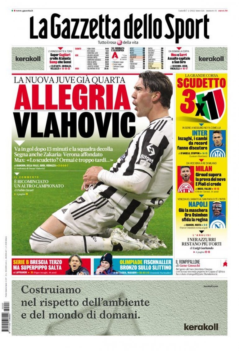 Ni to nije omelo italijanske novinare, sklone senzacionalizmu, da naslovima "Vlahović probudio Juve", "Juveova nova snaga" i već pomenuti "Živeo Vlahović", ožive priču o klubu koji je do pre nekoliko nedelja bio na poziciji na tabeli koja nije vodila - nikuda.