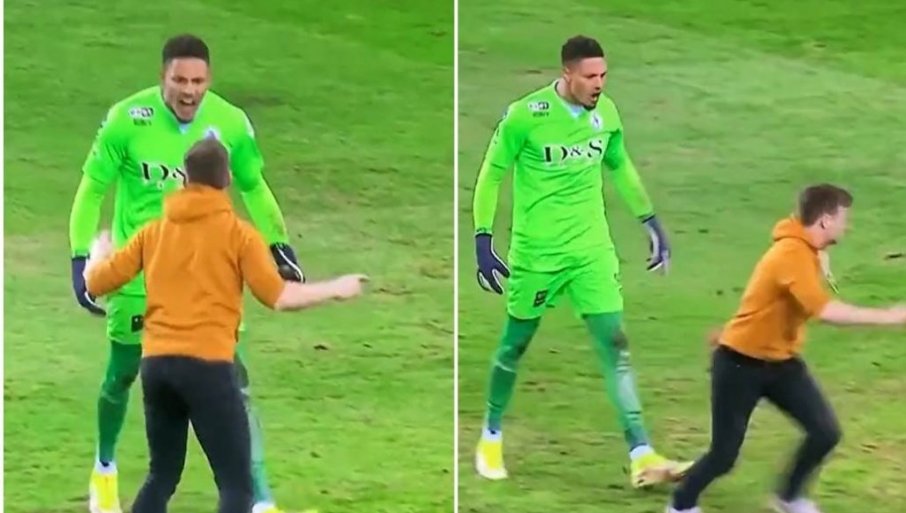 NAVIJAČ HTEO DA TUČE GOLMANA: Uleteo na teren, a posle jedva spasao živu glavu (VIDEO)