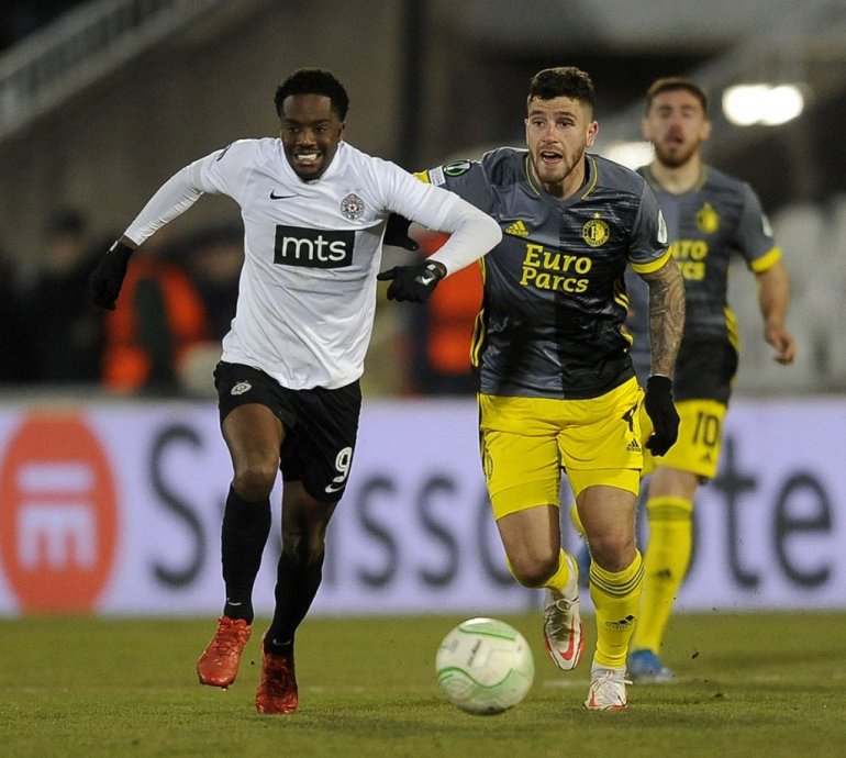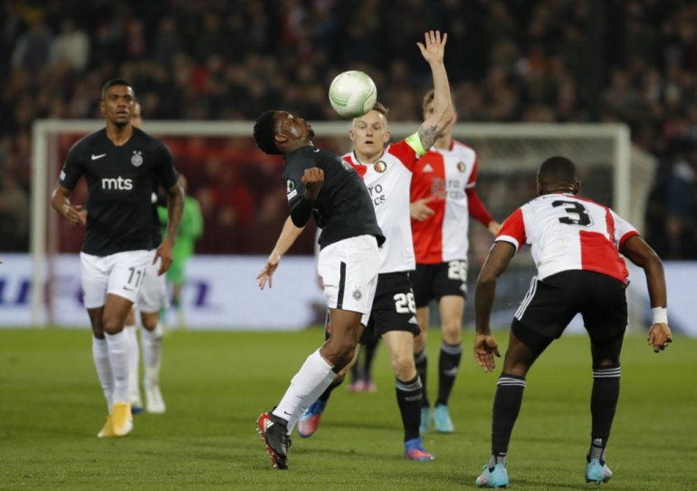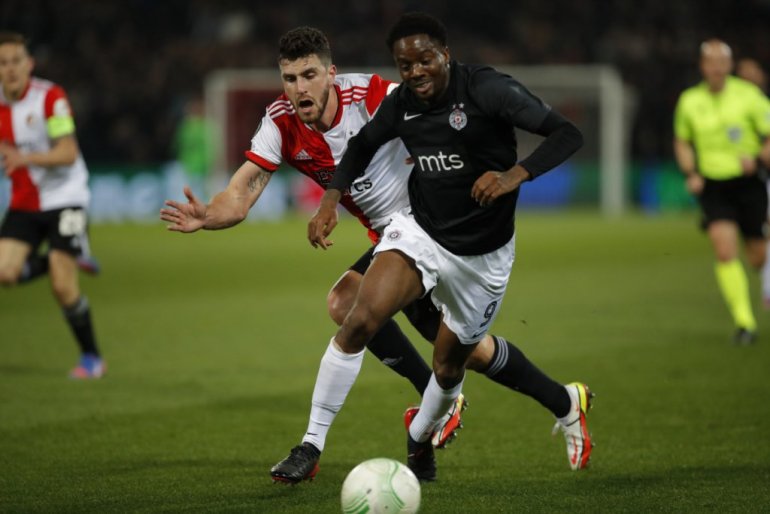 FUDBALERI Partizana poraženi su na gostovanju Fejenordu u Roterdamu u osmini finala Lige Konferencija rezultatom 3:1 (8:3) ukupan rezultat.