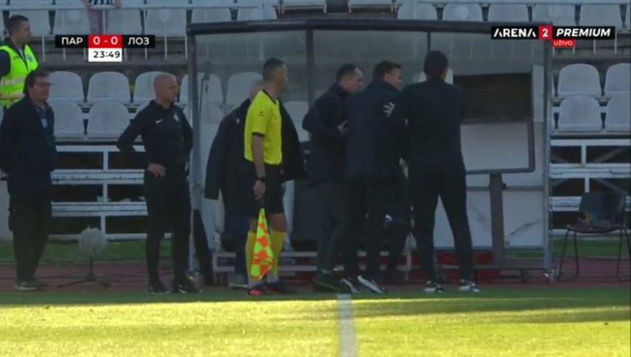 TRENER Partizana Aleksandar Stanojević nije se pomirio sa odlukom sudija u 22. minutu meča kada je pobesneo zbog nedosuđenog penala nad Rikardom Gomešom.