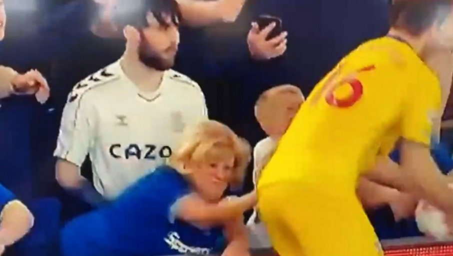 Štoper gostujuće ekipe Joakim Andersen i vezista Evertona Dele Ali bili su u "klinču" zbog lopte koja je već bila u autu. Navijačici Evertona očigledno se nije se sviđelo kako Danac tretira njenog ljubimca, pa je žustro reagovala.