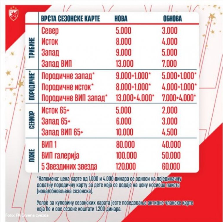 Predstojeća sezona je utoliko bitnija pošto će šampion Srbije obezbediti automatski plasman u grupnu fazu Lige šampiona. Zbog toga će momcima u crveno-belim dresovima biti neophodna i podrška sa tribina. a poznate su i cene sezonskih karata.