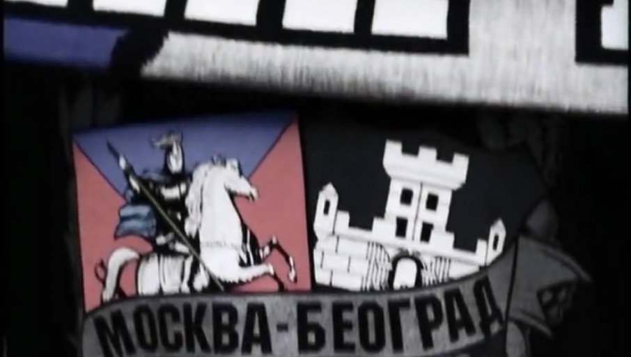 A na majici bratski odnos dva naroda predstavljen je kroz zajedničke prikaze grbova Mosvke i Beograda: