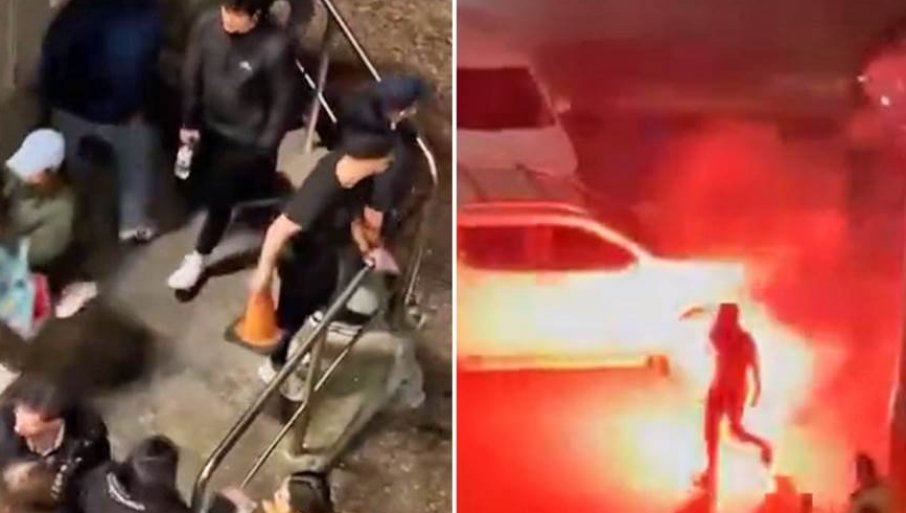 Policije nije bilo da smiri situaciju, a nekoliko redara pokušavalo je da skloni baklje koje su pale iza vozila u blizini stadiona kako ne bi došlo do požara.