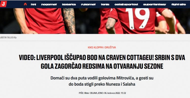 Srpski fudbaler je na otvaranju najatraktivnije lige sveta šokirao slavni Liverpul i sa dva gola bio heroj "Krejven kotidža".