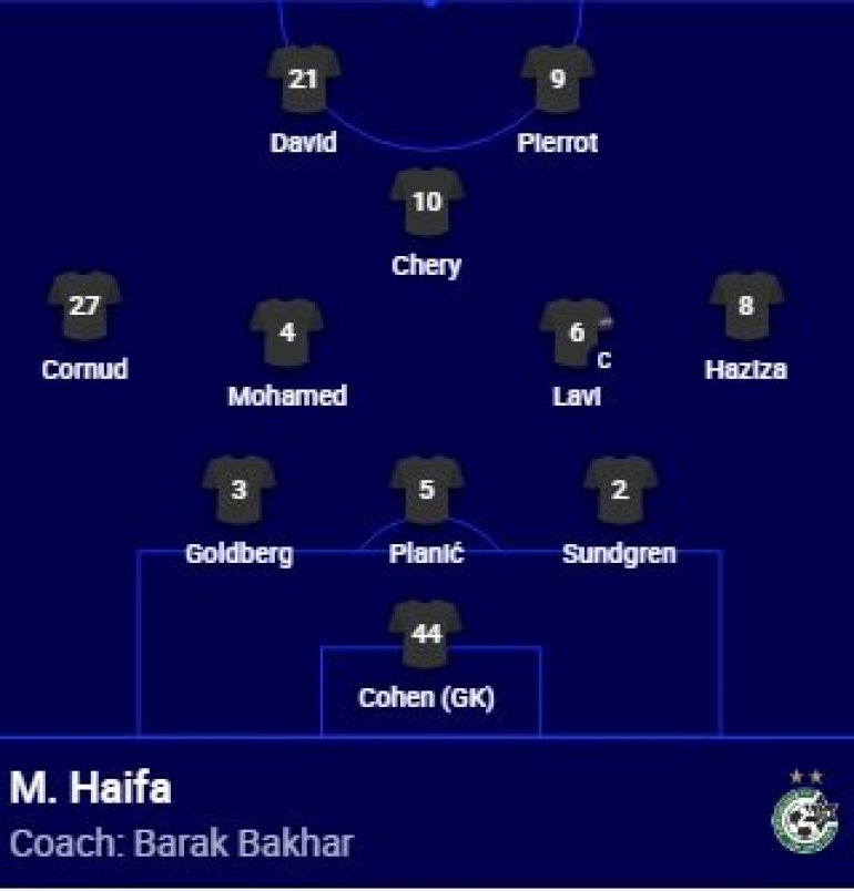 19.45 - Kada je reč o gostima iz Haife, oni će igrati s istom startnom postavom kao i na svom stadionu: Makabi: Koen - Sundgren, Planić, Goldberg, Kornu - Šeri, Lavi, Mohamed - Haziza, Pijero, David