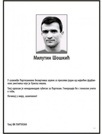 PARTIZAN SE OPROSTIO OD ŠOLETA: Poslednji pozdrav Milutinu Šoškiću od voljenog kluba