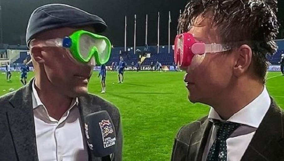 SA RONILAČKIM MASKAMA IZVEŠTAVALI IZ PODGORICE: Ovako su finski novinari najavili utakmicu protiv Crne Gore (FOTO)