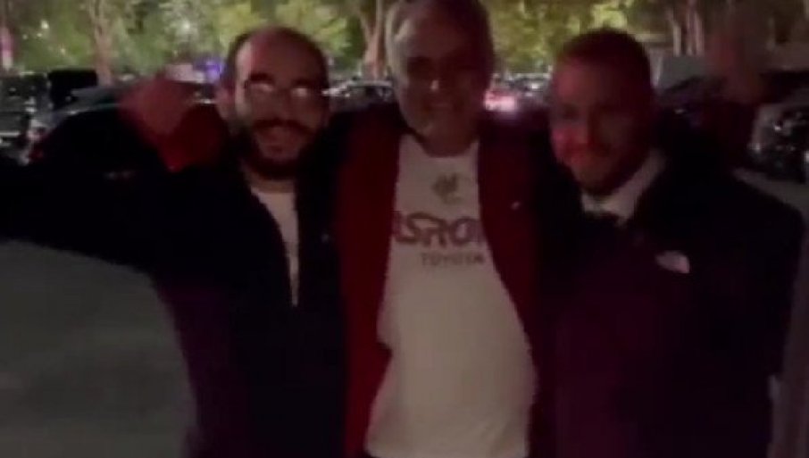 Naime, on je na parkingu odgledao meč zajedno sa nekoliko članova svog stručnog štaba, a zatim veliku pobedu proslavio jednim širokim osmehom u kameru.