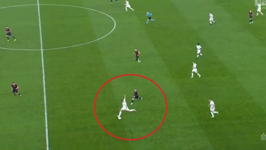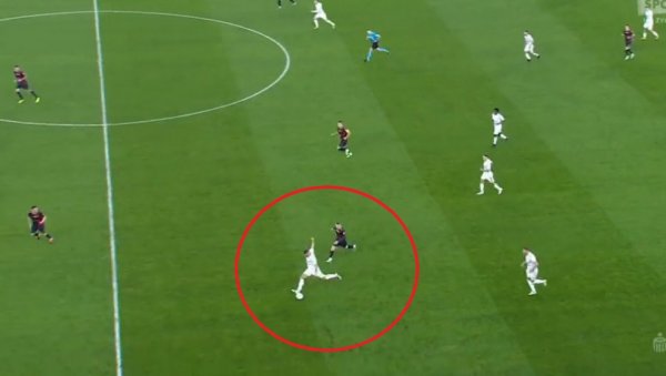 Naime, 37-godišnji njemački fudbaler uzeo je loptu na svojoj polovini, uočio je da je protivnički golman daleko od svog gola i šutirao.