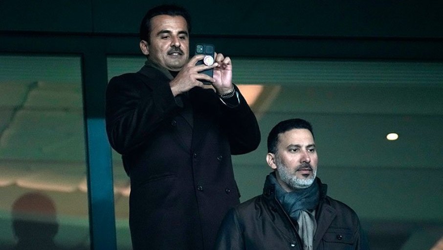 Šeik Al Tani, "čiji je" PSŽ, gleda meč protiv Bajerna / FOTO: Tanjug/AP