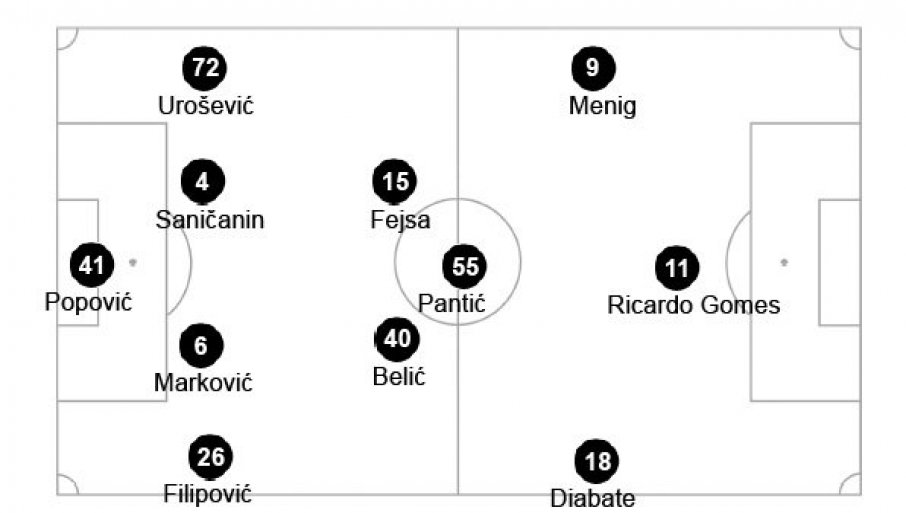 Partizan: Popović - Filipović, Marković, Saničanin, Urošević - Belić, Fejsa, Pantić - Dijabate, Menig, Rikardo Gomeš
