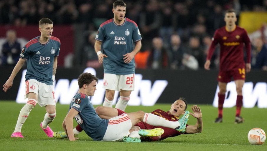 Nemanja Matić u duelu tokom revanša Roma - Fejenord / FOTO: Tanjug/AP