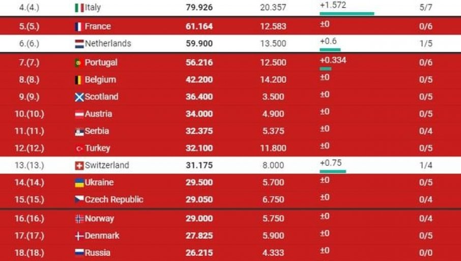 Ali već u perspektivi to ne izgleda dobro za sezonu 2025/26. Srbija je u toj projekciji već pala na 13. mesto iza Švajcaraca i Turaka. A 13. mesto nije isto što i 11. i 12. Ostaju dva predstavnika u kvalifikacijama za Ligu šampiona ali jedan manje za Ligu Evrope koji se seli u kvalifikacije za Ligu Evrope. Srbija ima u narednoj sezoni šansu da to popravi, ali s obzirom na to da će joj se prvi put bodovi deliti sa pet (brojem predstavnika), to će biti mnogo teže nego do sada.