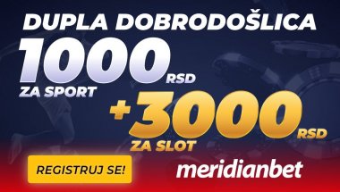MERIDIAN nastavlja sa specijalnim iznenađenjima za novajlije! Od sada vas čeka 1.000 DINARA za sportsko klađenje + 3.000 DINARA za slot igre!