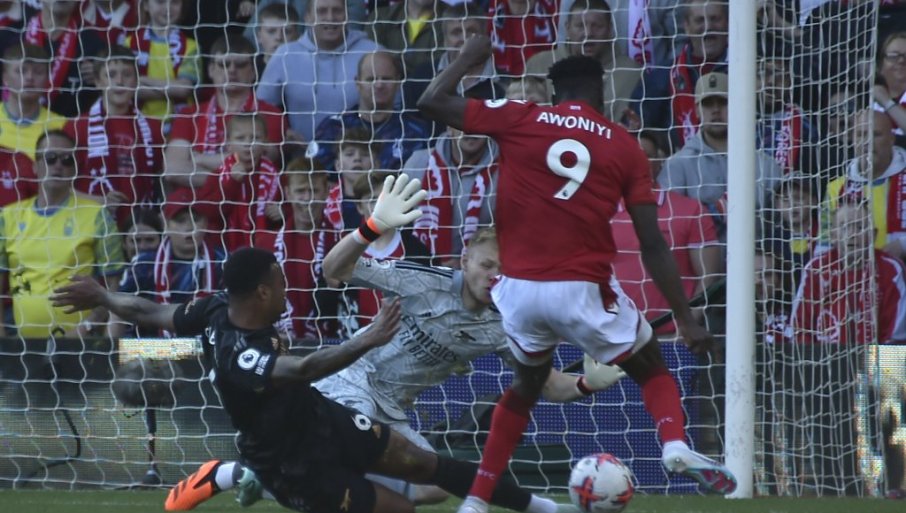 Taivo Avoniji daje gol za Notingem Forest protiv Arsenala i "predaje" šampionski tron Mančester sitiju / FOTO: Tanjug/AP