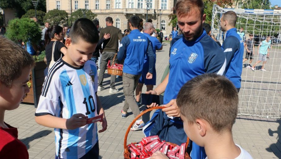 PROMOCIJA FK SMEDEREVO NA GRADSKOM TRGU: Prvotimci igrali fudbal sa osnovcima i delili im poklone