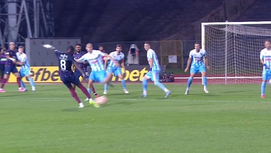 68' - Opasna je bila akcija crno-belih, Zahid je pripretio glavom, lopta je prohujala kroz peterac, a onda, koji sekund kasnije, zbog visoko podignute noge Saldanje u kaznenom prostoru rivala, sudija dodeljuje loptu Spartaku.