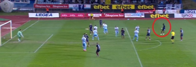 35' - Stativa! Kanute je sjajno šutirao sa distance, izuzetno je to bilo snažan udarac Senegalca sa oko 25 metara, a pogodio je levi okvir gola. U nastavku akcije je oprobao udarac i spoljnim delom kopačke, no nije bio precizan. Evo odakle je šutirao Frank Kanute: