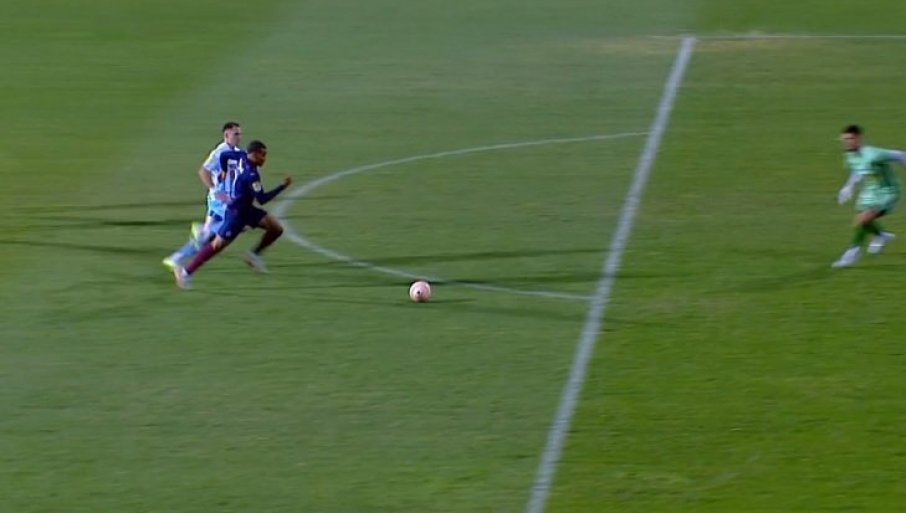 21' - Nezgodni su "golubovi", nisu tek tako ostvarili tri pobede u poslednja četiri kola - sad su umalo iskoristili loše dodavanje gostiju na sredini terena, ali su Ilić i Marković bili brži u sprintu od Ubiparipa.