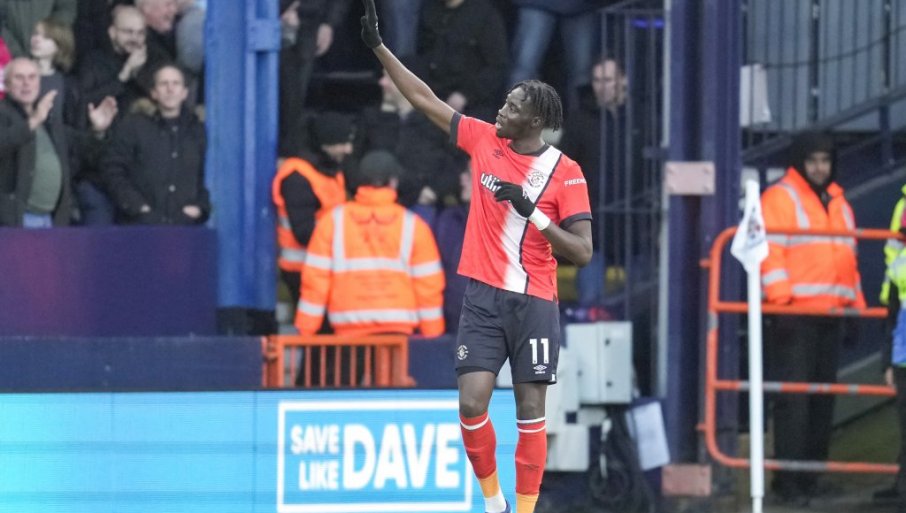 Ilaja Adebajo slavi gol za Luton Taun protiv Mančester sitija u Premijer ligi / FOTO: Tanjug/AP