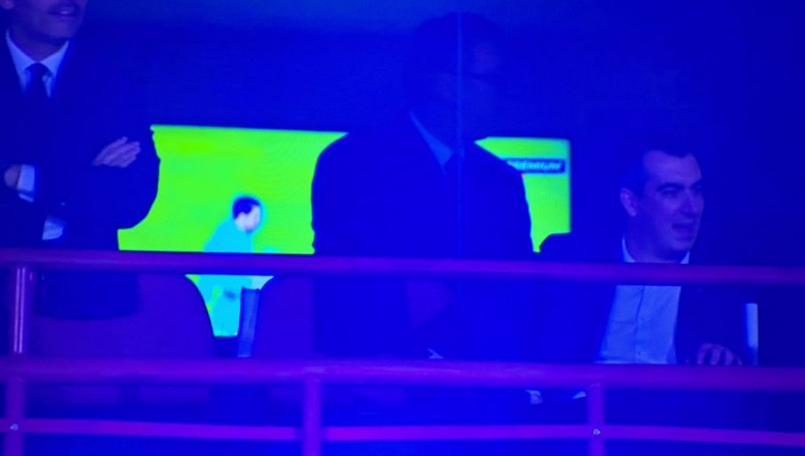 Predsednik Srbije Aleksandar Vučić nalazi se na stadionu Rajko Mitić gde sa predsedavajućim Uprave za izvršne poslove Ujedinjenih Arapskih Emirata i vlasnikom kluba Mančester siti Haldunom el Mubarakom, zajedno prate meč na stadionu Rajko MItić.
