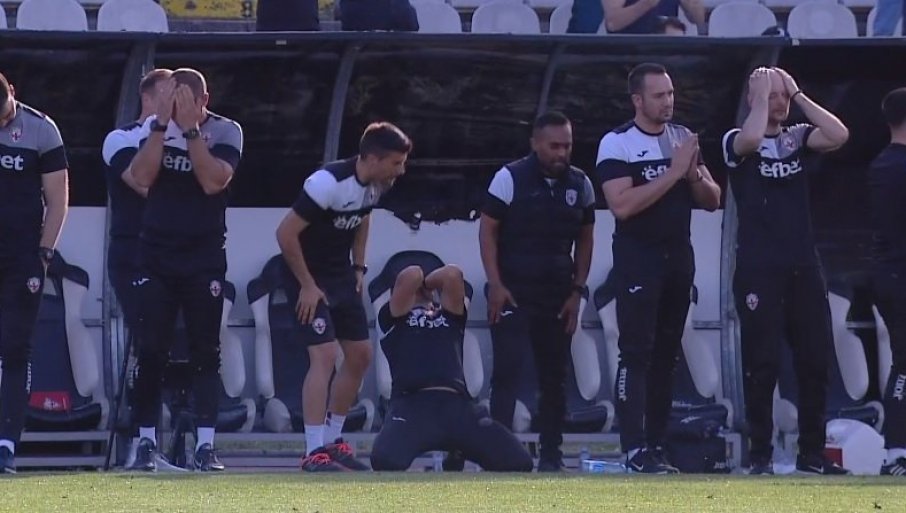 Neverica pred klupom Voždovca tokom penal-serije sa Partizanom / Foto: Printskrin/Arena sport
