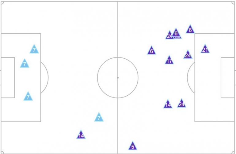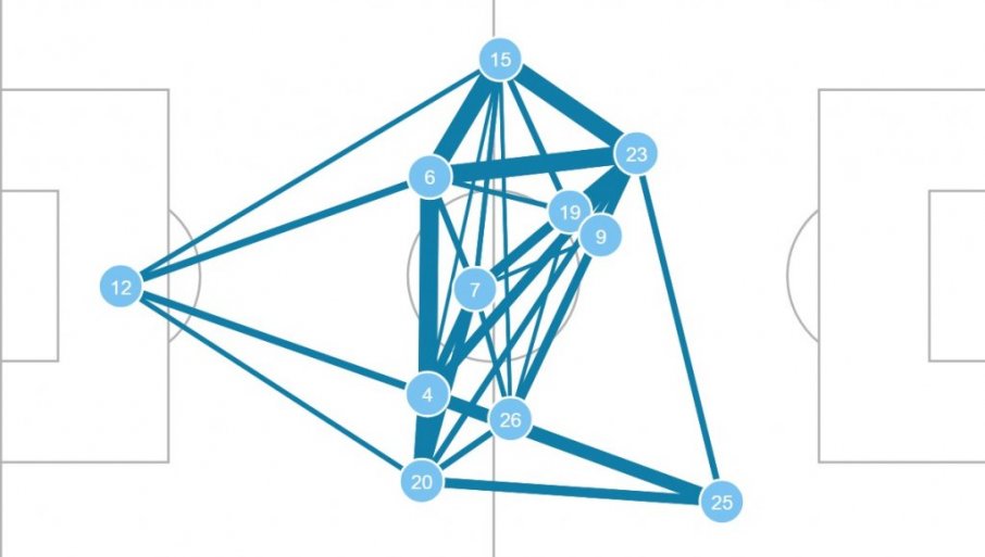 Broj poseda u suparničkoj defanzivnoj trećini terena: Statistika najčešćih dodavanja i najčešćih pozicija Zvezdinih igrača na meču Bode Glimt - Crvena zvezda / Screenshot / OPTA