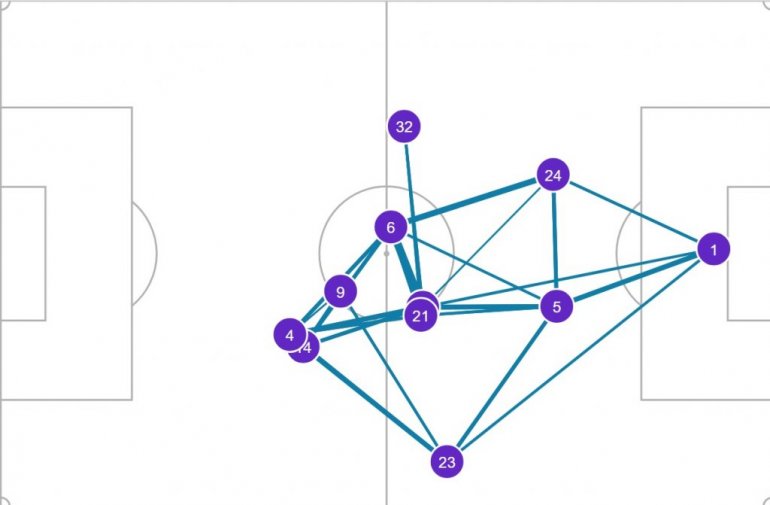 Duga dodavanja: Statistika najčešćih dodavanja i najčešćih pozicija domaćih igrača na meču Bode Glimt - Crvena zvezda / Screenshot / OPTA