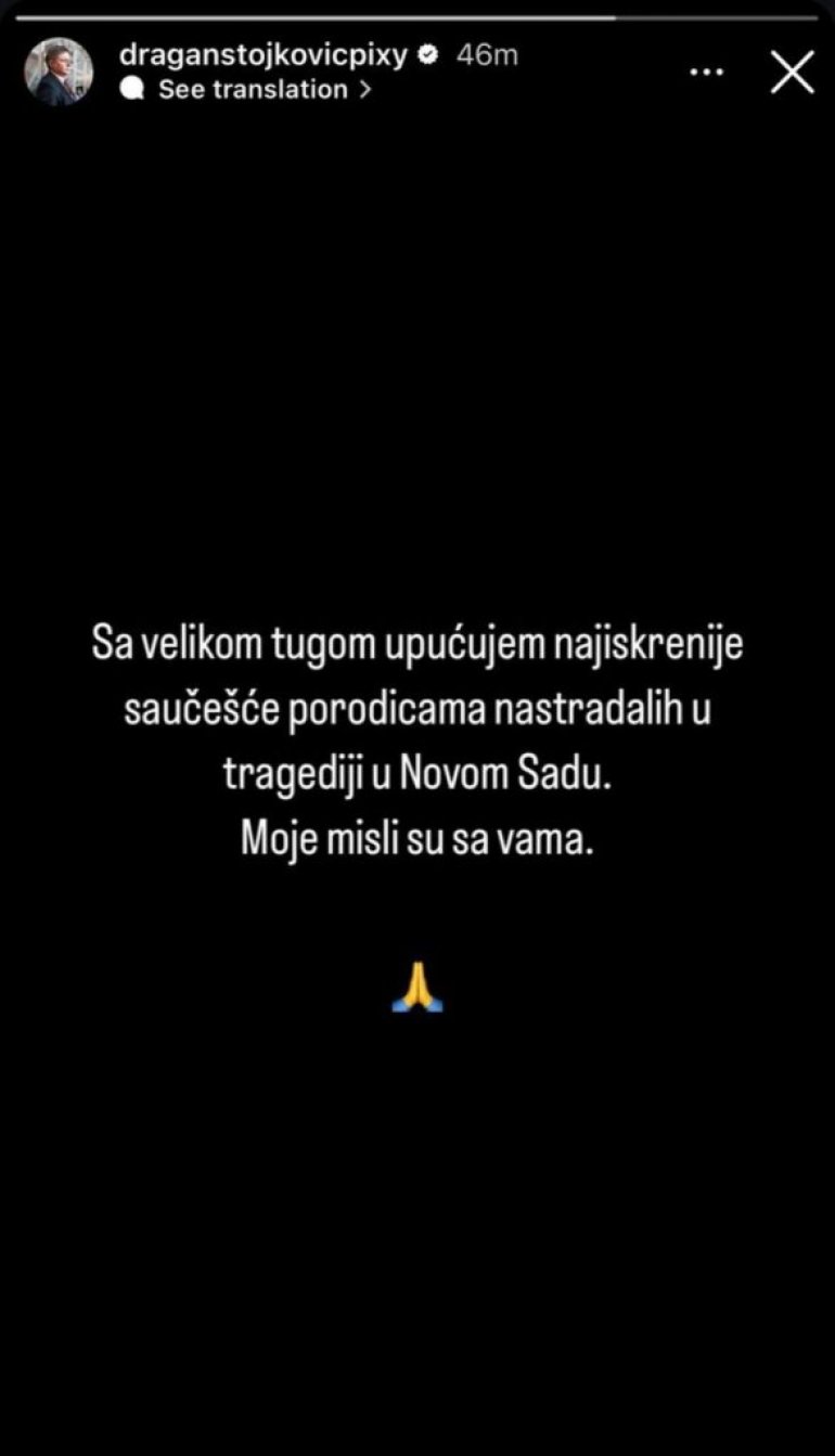 Selektor fudbalske reprezentacije Srbije Dragan Stojković Piksi oglasio se povodom tragedije koja se dogodila na železničkoj stanici u Novom Sadu.