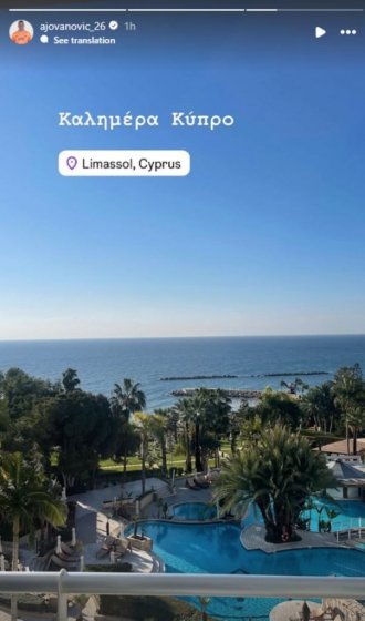 Naime, dan posle meča Partizan - IMT, Aleksandar Jovanović je napustio Srbiju i otišao na Kipar. Odlični čuvar mreže je na svom Instagram profilu objavio sliku iz jedne hotelske sobe u gradu Limasolu.