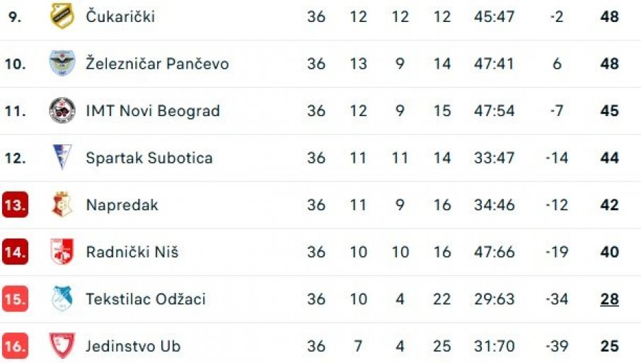 "Čarapani" su sa druge strane ostali u igri. Oni su takođe na mestu koje vodi u baraž, ali imaju šansu (doduše ne veliku) da sačuvaju superligaški status.