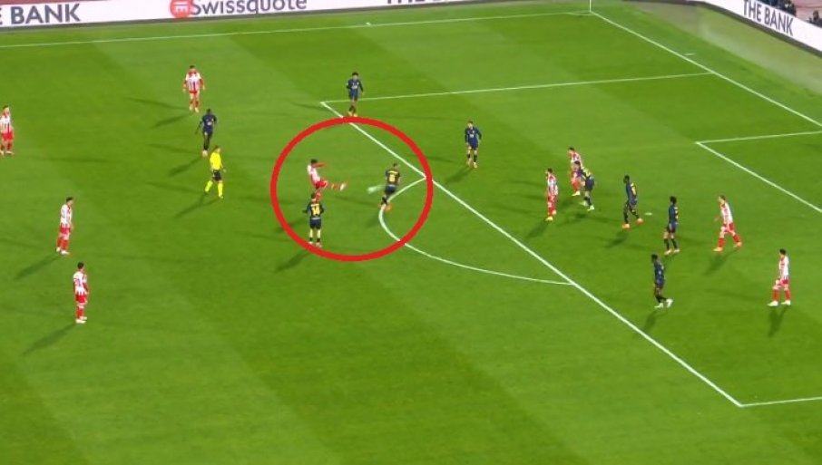 Jer, na suparničkoj strani terena je oduzeta lopta. Vraćena je skroz do golmana, a ovaj proigrao Veljkovića, on Radonjića, posle čega je usledila lopta za Seola i - ključno dodavanje ka Ivaniću. Kapiten Zvezde je umakao čuvaru u tom, 84. minutu, naterao svojim begom golmana Lila Ozera da ga faulira i to je bio penal.