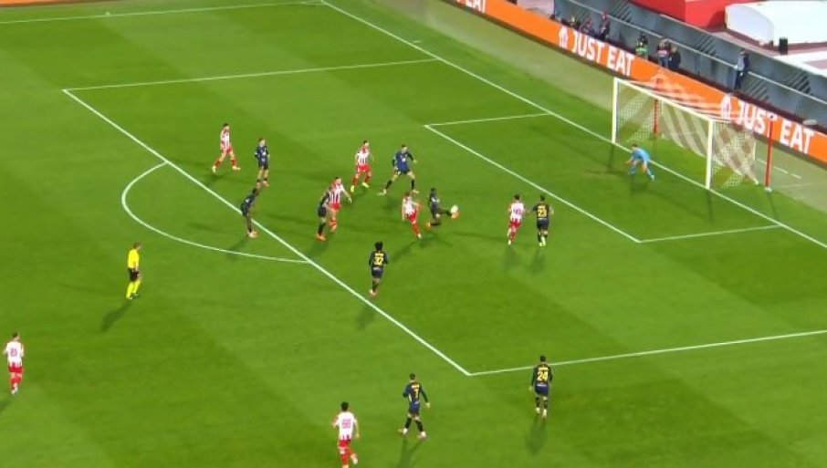 4' - Velike prilike za Zvezdu! Najpre Veljković, kome je šut odbranjen, pa onda Arnautović sa 2-3 metra pokušava, spasava se golman gostiju!