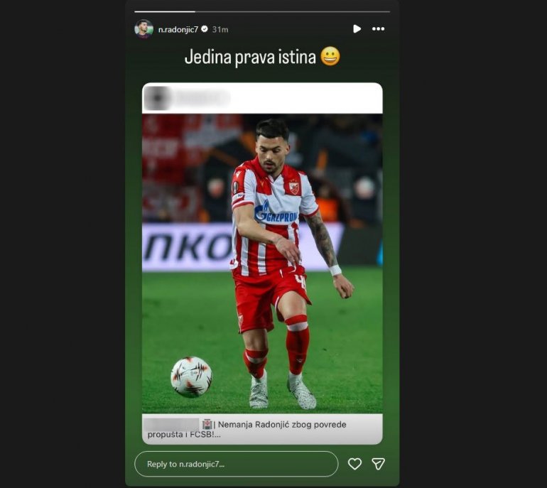 On je, naime, na Instagramu ponovio tuđu objavu o tome da "zbog povrede" propušta naredni meč u Evropi i dodao svoj komentar: "Jedina prava istina", ali i "smajli".