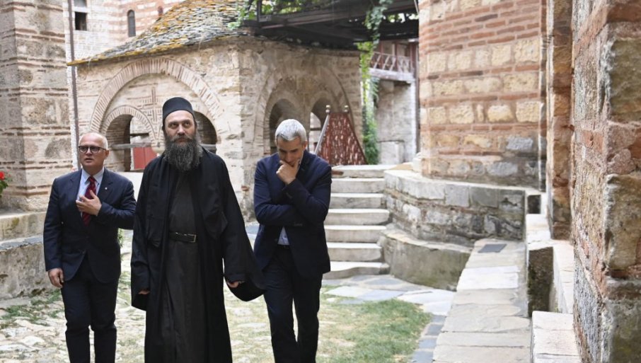 DOGOVOR Goran Vesić, iguman Metodije i Andreja Mladenović, Foto Beoinfo