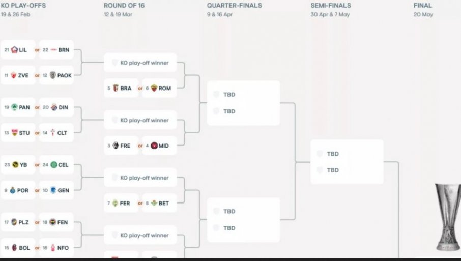 Francuze je Zvezda pobedila 1:0 golom Marka Arnautovića. Onda bi se ti žrebani parovi ukrstili ili sa Romom, ili sa Bragom, od koje je Zvezda gubila. Sve zavisi od utakmica poslednjeg kola, a izabranici Dejana Stankovića imaju veliki zadatak 29. januara protiv Selte na Marakani.
