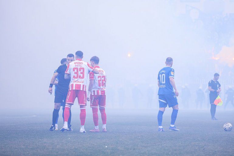 Prekid je trajao više od pet minuta, da bi pošto se dim spustio, sudija Nikolić odlučio da nastavi duel. Potom je usledio šok za šampiona, koji je kapitulirao! Uspeo je domaćin da zatrese mrežu Mateusa u 7. minutu, međutim, iz nedozvoljene pozicije, pa je visoko podignuta zastavica spasila Stankovićev tim.