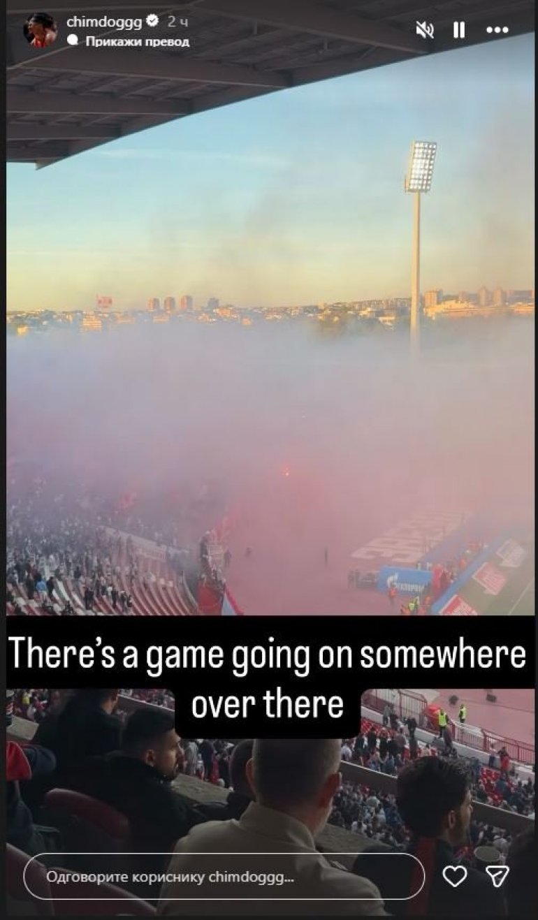 Tokom derbija je Moneke uživao u loži, a u jednom momentu je snimao dim koji je doslovno spustio takvu zavesu na teren, da niko sa tribina nije mogao da vidi šta se dešava.