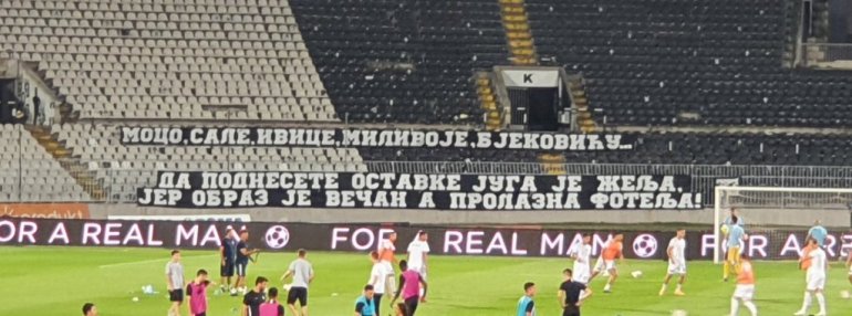 NA utakmici sa Radom navijači Partizana su razvili transparent na južnoj tribini, gde traže ostavke legendi kluba.