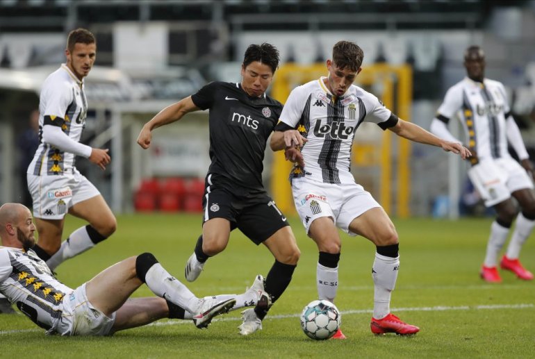 Takuma Asano u duelu sa igračima Šarlroa/FOTO: FK Partizan