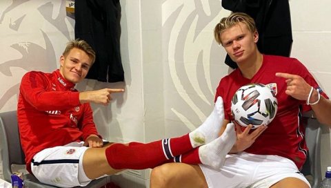 Fudbalska reprezentacija Norveške napunila je mrežu Rumuniji u trećem kolu Lige nacija (4:0), opet su blistali njeni mladi asovi. Erling Haland postigao je het-trik, kod dva od ta tri gola asistent je bio Martin Odegard, pa su njih dvojica uspomenu na ovaj meč ovekovečili zanimljivom zajedničkom fotografijom.