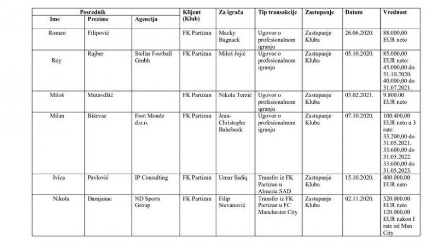 U galeriji u nastavku pogledajte i kako izgledaju svi podaci i koliko je koji menadžer uzeo koliko novca za konkretne transfere u srpskom fudbalu: