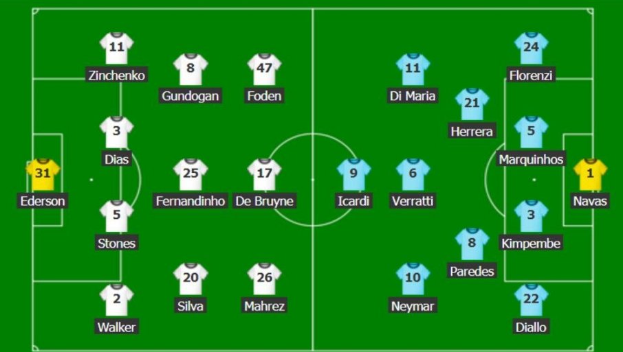 45. MINUT - Idealno poluvreme Sitija. PSŽ je imao samo šansu od 15 do 22. minuta. Mančester je mogao u nadoknadi da duplira prednost. Navas je dva puta spasao PSŽ.