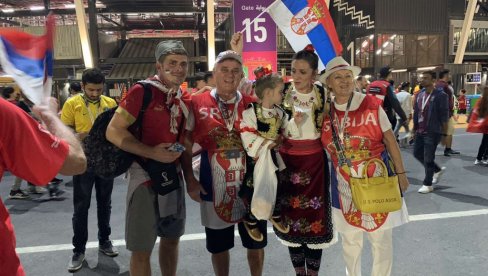Naime, novinar "Novosti" sreo je porodicu srpskih navijača koji su u srpskoj narodnoj nošnji odlučili da pruže podršku fudbalerima, a preslatka plavokosa devojčica privukla je pažnju svih.